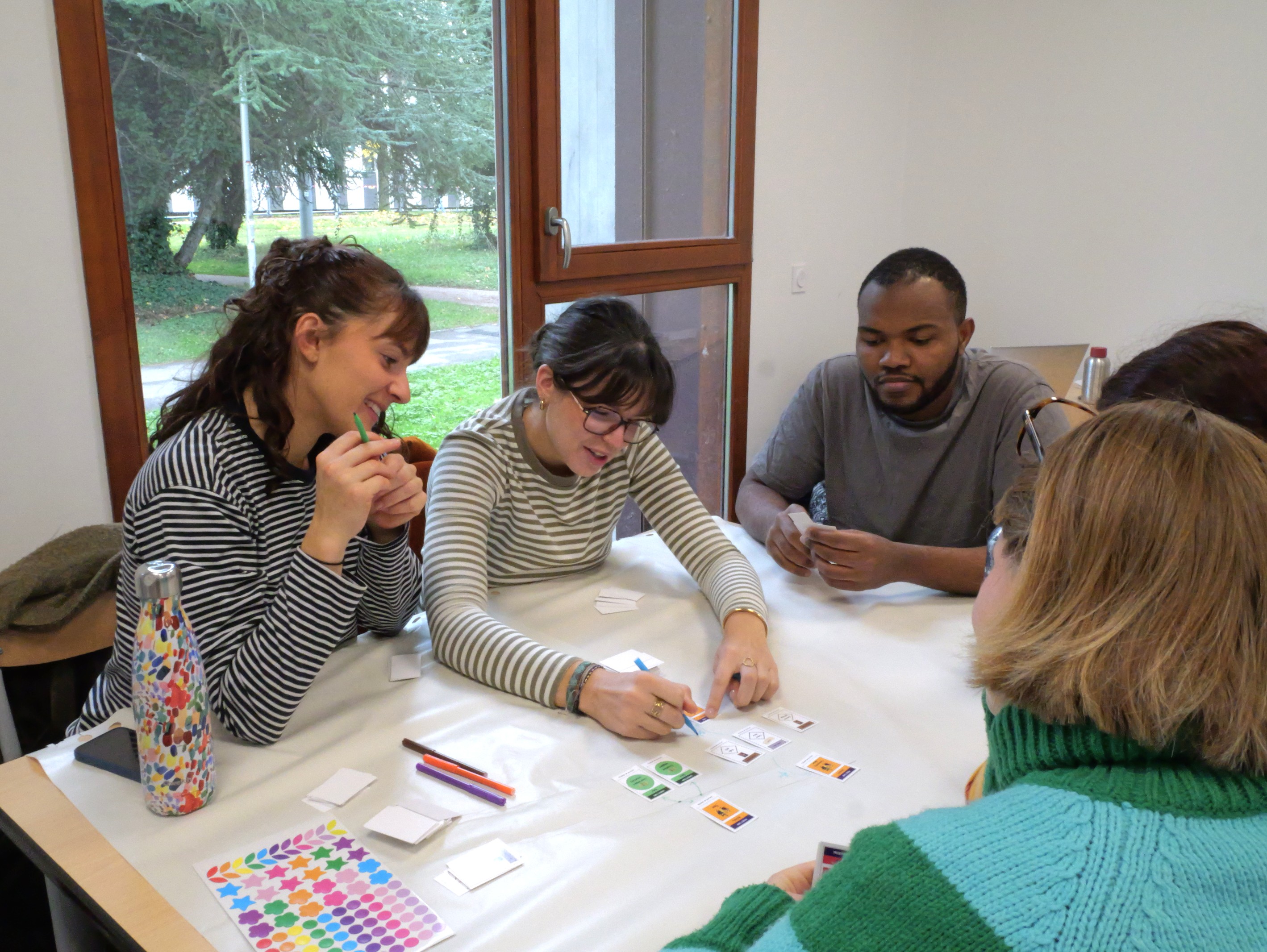 The principle of the game is simple: lay the cards on the table and have them interact to build a mind map that serves as the basis for the project.